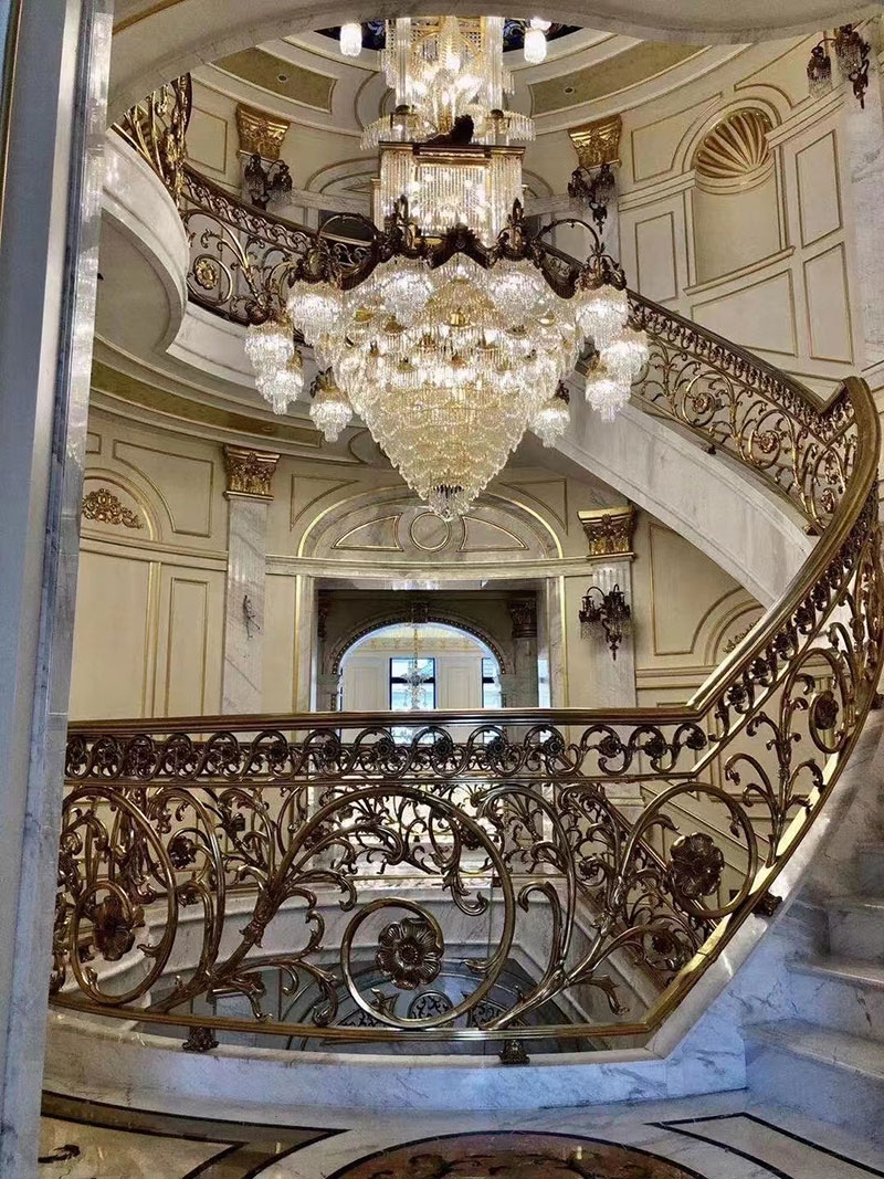 北京別墅銅藝雕刻樓梯定制扶手裝修效果圖