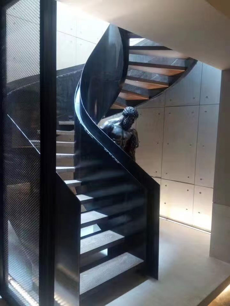 大興黑色旋轉弧形樓梯定制設計效果圖