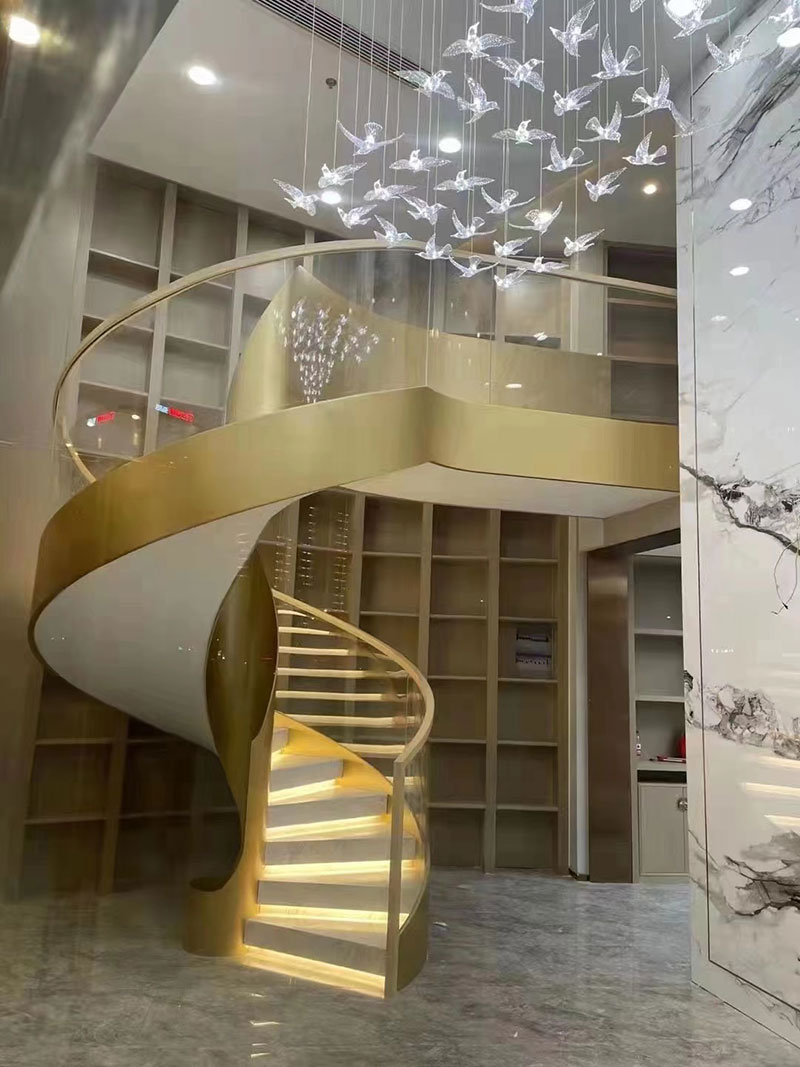 別墅弧形銅雕刻樓梯扶手的設計特點是整個充滿銅雕曲線管,精致光滑,弧形光線飽滿明亮,表現出無辜的感覺;在柔和溫暖的光線下,高貴典雅,切割表面光滑細膩,在沉默中突出味道。不僅如此,全銅樓梯扶手銅藝術護欄,精致的曲線相互襯托,充滿高貴奢華的品味,也反映了溫柔的儒家氛圍。