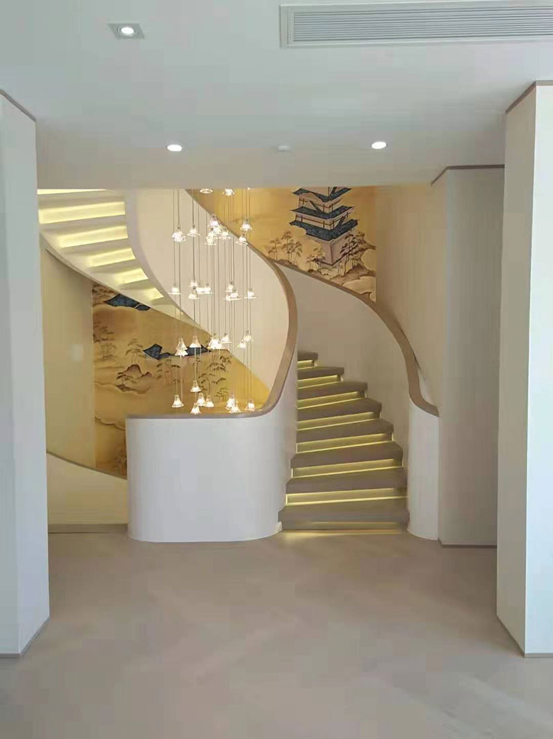 樓梯是豪宅裝修中常見的空間,弧形樓梯是時尚家居生活的美麗風(fēng)景。在別墅和豪宅的空間設(shè)計中,也充分利用了樓梯的優(yōu)雅。樓梯不再是簡單的行走工具,其結(jié)構(gòu)處處流露出對設(shè)計和美學(xué)的追求。